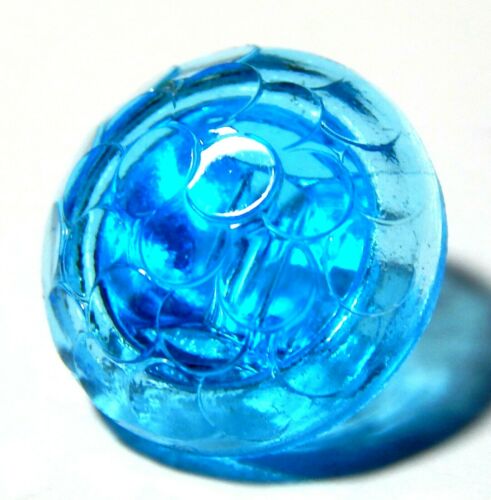 1930''S AZURE BLUE DEPRESSION GLASS BUTTON w/OVERLAPPING DOT PATTERN ON TOP