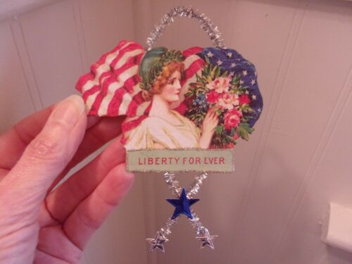 Title (ebay affiliate link): Antique VTG. Look Christmas Ornament, FLAG--Roses SCRAP, Tinsel, Handmade