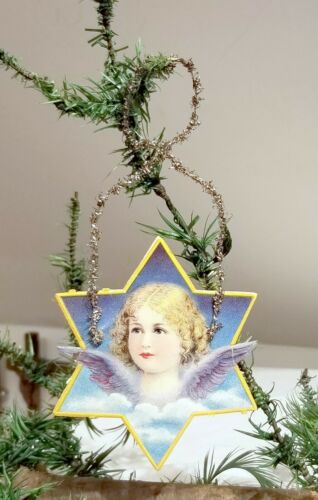 Title (ebay affiliate link): Paper Angel in Star, with Silver tinsel Holder. 1920s German Christmas Ornament