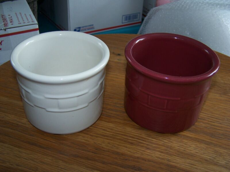 Title (ebay affiliate link): Set of 2 LONGABERGER Crocks Woven Traditions IVORY PAPRIKA - One Pint - No Lids