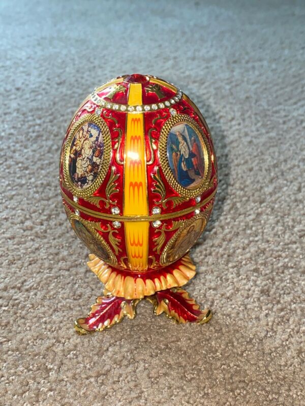 Title (ebay affiliate link): Faberge Egg Christian Stained Glass Russian Style Easter Trinket Jewel Box Box