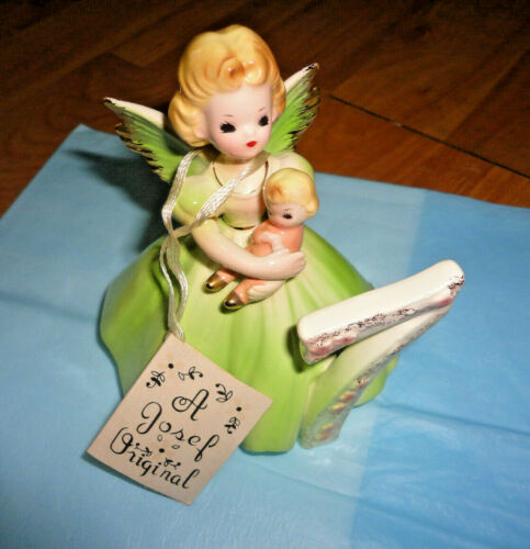 Title (ebay affiliate link): Josef Originals 7 Birthday Girl Angel Holding Doll Figurine Tag Green Dress 4"