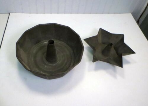 2 Antique Signed LA. & Co. 740 Tin Bundt Cake Baking Pans Molds Star & 12 Sided
