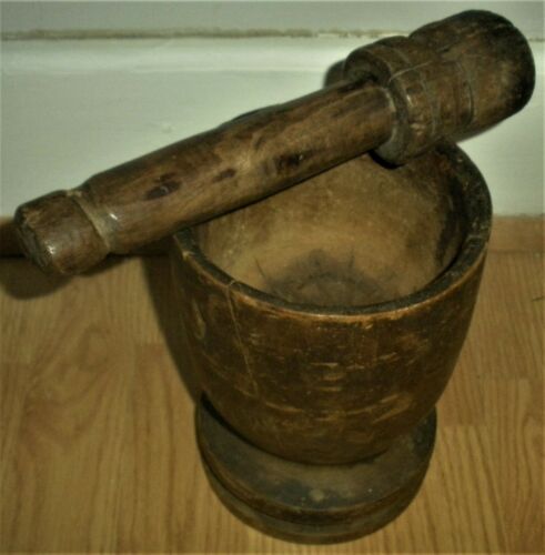 Title (ebay affiliate link): ANTIQUE c. 1850 PRIMITIVE TREEN WOOD MORTAR & PESTLE GREAT PATINA & DESIGN vafo