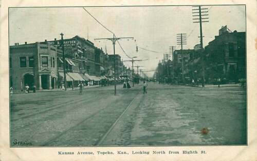 Title (ebay affiliate link): Postcard Kansas Avenue Street Scene looking North, Topeka, Kansas - circa 1908