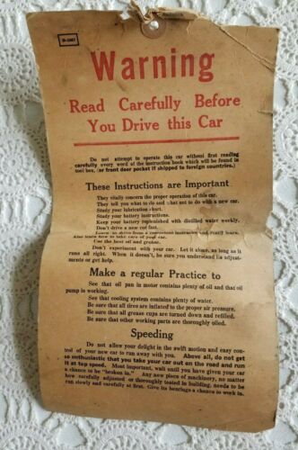 Title (ebay affiliate link): Vtg 1910s Orig Studebaker Cardboard Tag Car Purchase Driving Care Instructions