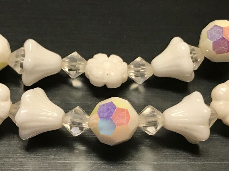 Title (ebay affiliate link): Vintage Crystal White Milk Glass Iridescent Bead Flower Double NECKLACE Jewelry