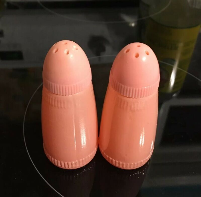 Title (ebay affiliate link): Vintage Art Deco Glass Shakers Pink Diner 1950s Retro