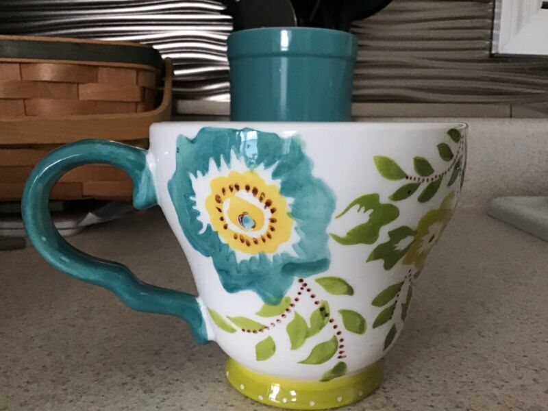 Title (ebay affiliate link): Dutch Wax by Coastline Imports Hand Painted Floral Flowers 16 Oz. Coffee Mug Cup