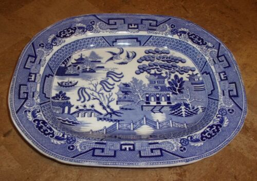Title (ebay affiliate link): ANTIQUE Flow-Blue Willow Victorian LG Platter #14 Circa~1880 Asian Pagoda Scene