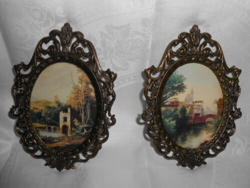 Two Action Ornate Oval Metal Frames/Pictures Bridges Cheswick PA, Italy VGC