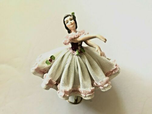 Dresden Porcelain Lady Lace Figurine 4" PINK White Dress DRESDEN ART GERMANY B1
