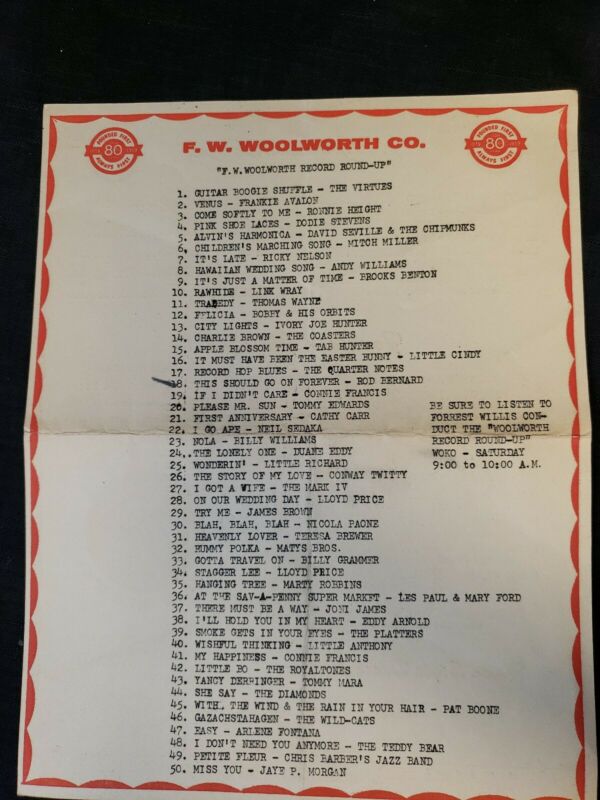 Original 1959 F.W. Woolworth Co Menu Coca Cola Record Round-Up Forrest Conduct
