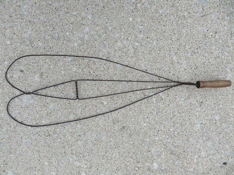 Title (ebay affiliate link): Vtg Antique Primitive Twisted WIRE Rug CARPET BEATER=31" long=Wood Handle
