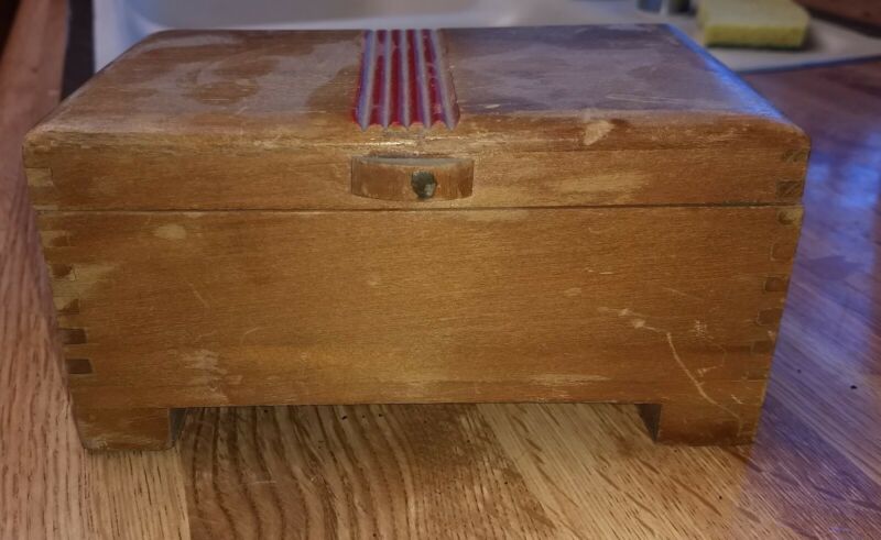 Handmade Primitive Music Box Jewelery Trinket Box Wood Wooden Still Plays