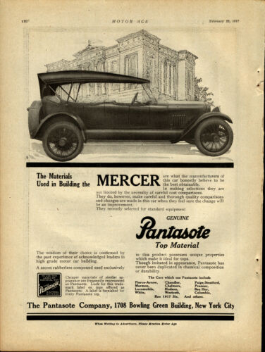 1922 Pantasote Tops Advertisement: On Mercer Motor Cars of Trenton, New Jersey