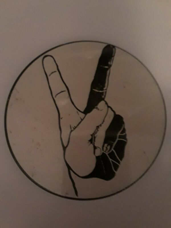 Title (ebay affiliate link): Rare Vintage Black and White Peace Sign Pin Button 60''s Era