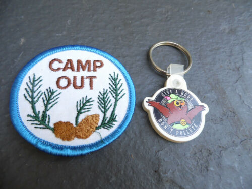 CAMP OUT Patch WOODSY OWL GIVE A HOOT DON''T POLLUTE Key Chain Vintage New Lot 2