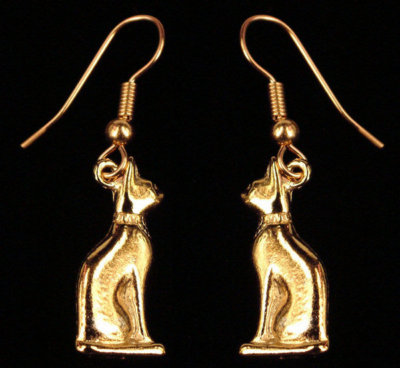 24kt GP Gold Egyptian Bastet Cat Earrings