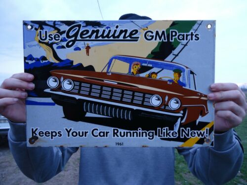 VINTAGE 1961 GENUINE GM PARTS PORCELAIN ENAMEL DEALERSHIP SIGN CHEVY CAR TRUCK