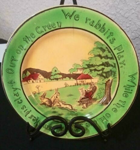 Title (ebay affiliate link): ANTIQUE ST AUGUSTINE WARE STAFFORDSHIRE WELSH RABBIT NURSERY RHYME PLATE ENGLAND