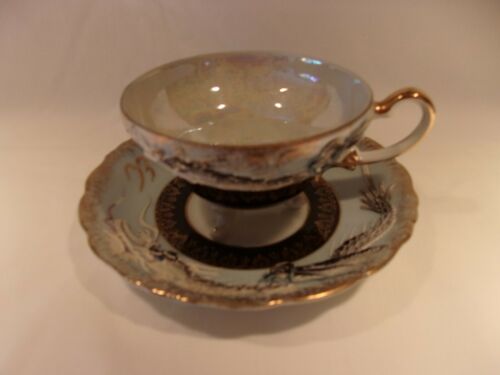 Vintage Blue Black Gold Dragonware Dragon Asian Footed Teacup & Saucer Set