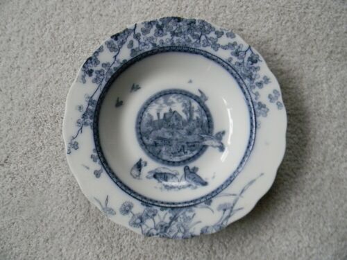 Antique 1871 Brownfield & SONS WOODLAND FLOW BLUE SHALLOW BOWL/ DISH 9 1/2"