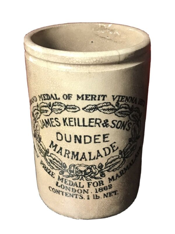 Title (ebay affiliate link): ANTIQUE MARMALADE STONEWARE JAR JAMES A KELLER & SONS DUNDEE LONDON ENGLAND