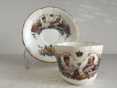 Antique British Royal Queen Alexandra King Edward VII Coronation Cup and Saucer