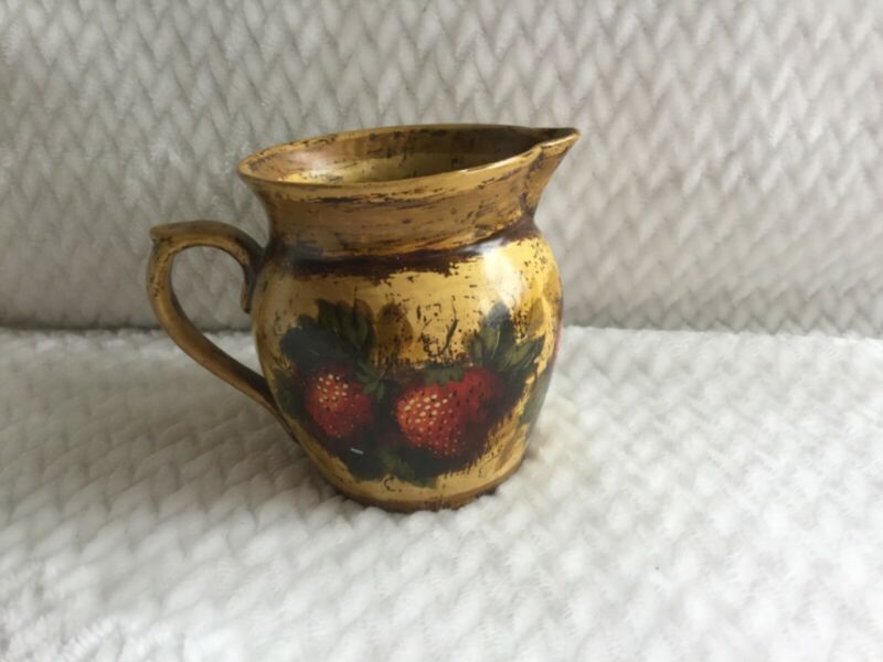 Peter Ompir signed original strawberry motif small folk art pitcher