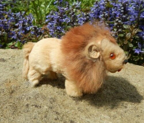 Vntg Antique German Lion Zoo Ark Putz Real Fur Hide 2" miniature Stick Leg Doll
