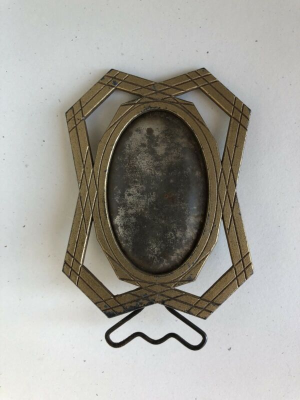 Vintage French Art Deco Gold Tone Metal Picture Frame w Easel