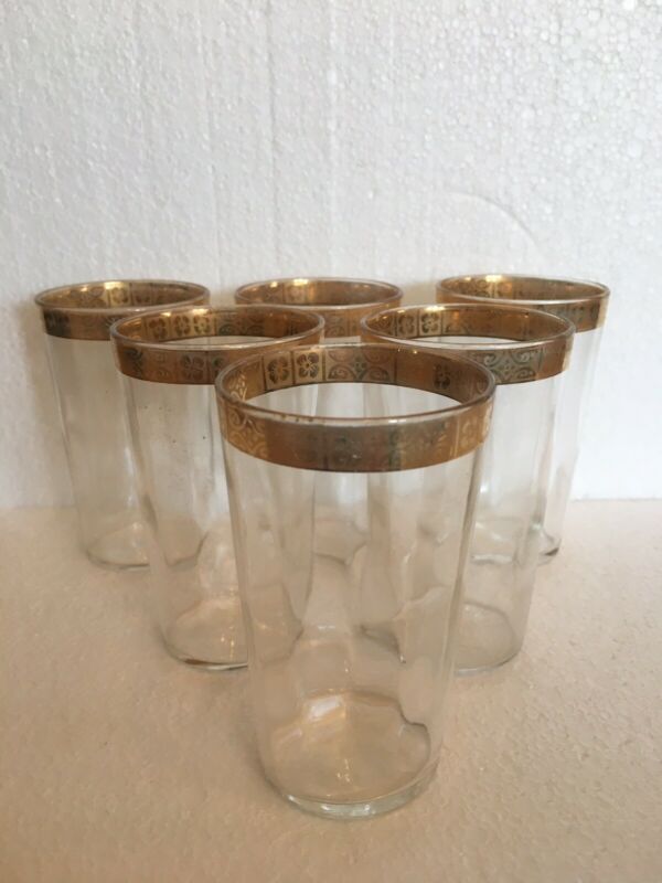 Title (ebay affiliate link): 6 Vintage Drinking glasses Cocktail / Bar Drinking glass Gold Trim
