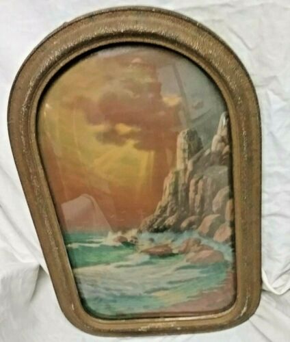 Title (ebay affiliate link): ANTIQUE VINTAGE BUBBLE GLASS WOOD FRAME SEASCAPE W A CARSON PRINT CHICAGO CO.