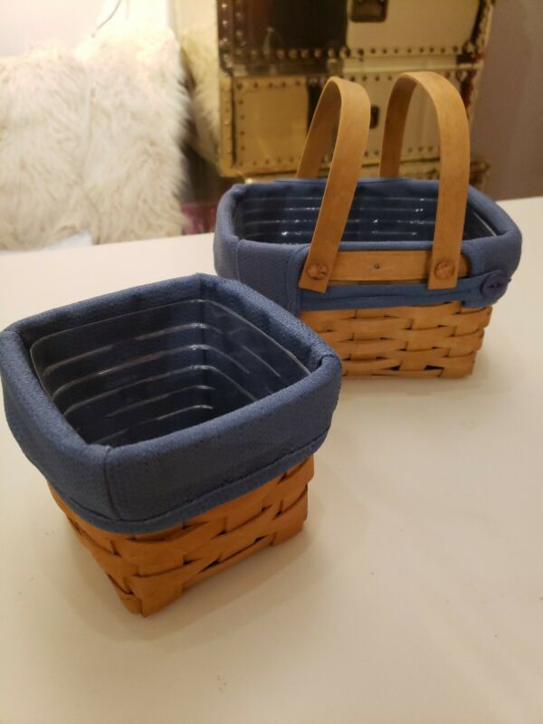 2 Longaberger Medium Berry Basket Swinging Handle Classic blue NEW