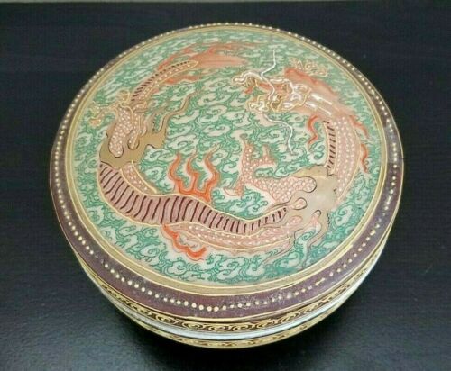 Vintage Japanese Dragonware Porcelain Hand Painted Footed Trinket Box