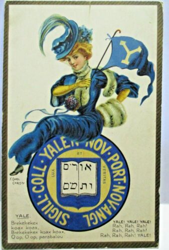 1908 ART SIGNED F EARL CHRISTY TUCK UNIVERSITY GIRL SERIES POSTCARD YALE,PENNANT