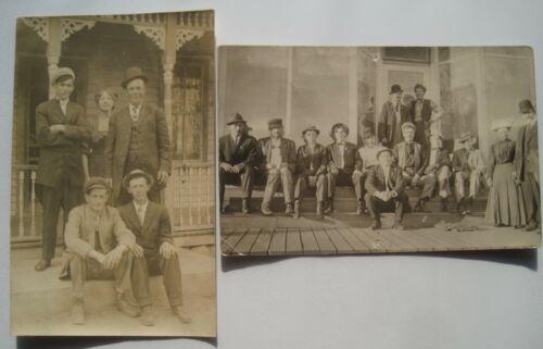 Two Mostly Men with Hats Outside Old 1910-20s RPPC Postcards; House; Store