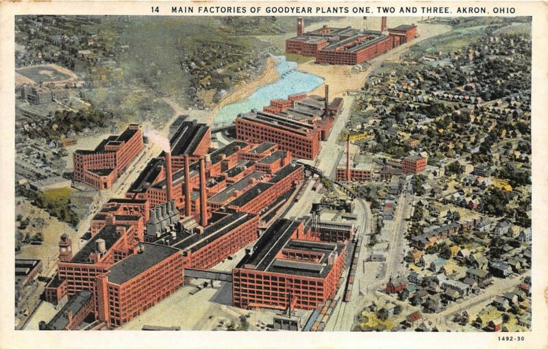 Title (ebay affiliate link): Akron Ohio 1933 Postcard Main Factories Of Goodyear Plants One Two & Three