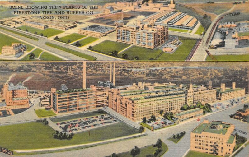 Title (ebay affiliate link): Akron Ohio 1955 Postcard 7 Plants of Firestone Tire & Rubber Co