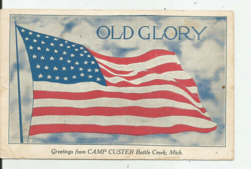Title (ebay affiliate link): MI Battle Creek CAMP CUSTER OLD GLORY Greetings Old Postcard WW2