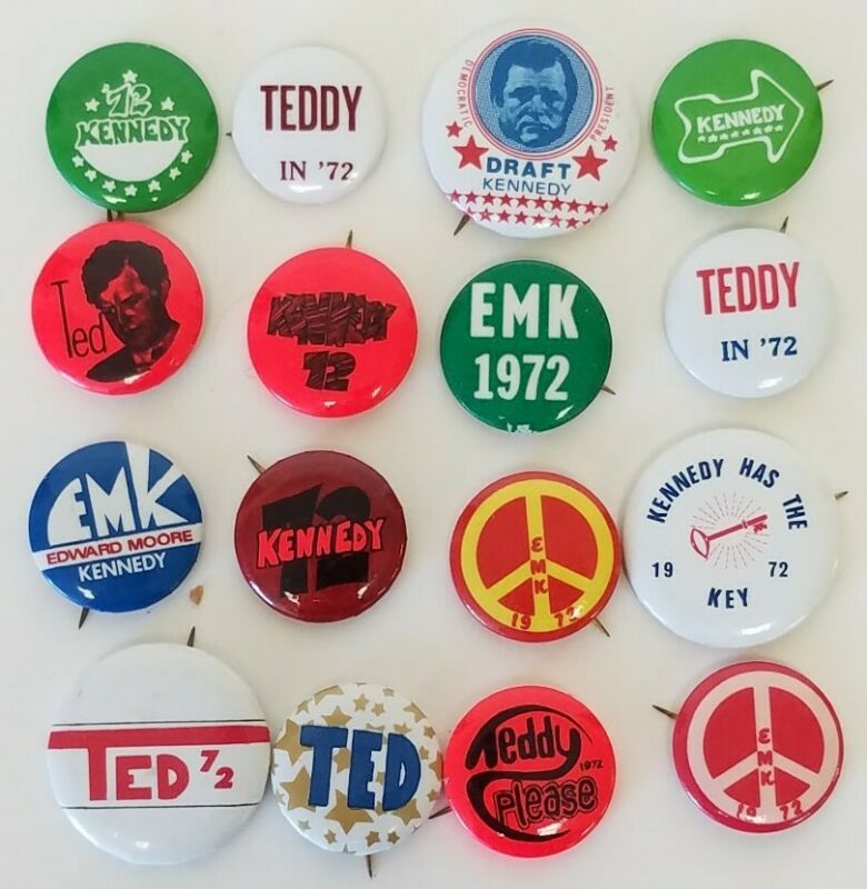 Title (ebay affiliate link): 16 Vintage 1972 Ted Kennedy Presidential Campaign Pinback Buttons