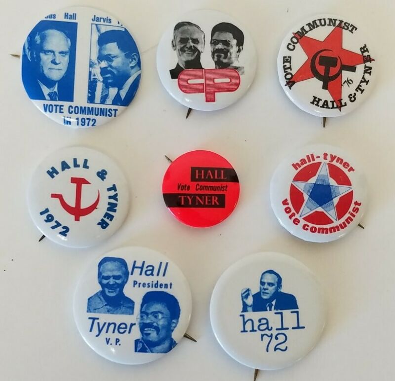 Title (ebay affiliate link): 8 Vintage 1972 Communist Party Hall/Tyner Presidential Campaign Pinback Buttons