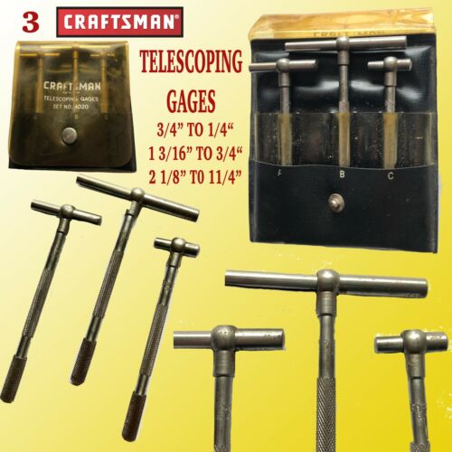 CRAFTSMAN 3PC TELESCOPING GAGES 3/4" TO 1/4",1 3/16" TO 3/4" & 2 1/8" TO 1 1/4"