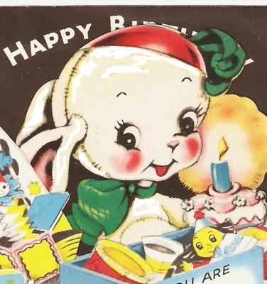 Bunny Rabbit Paper Doll Vintage Birthday Card