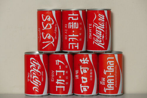 Title (ebay affiliate link): 1984 Coca Cola 7 cans set from Belgium, Languages