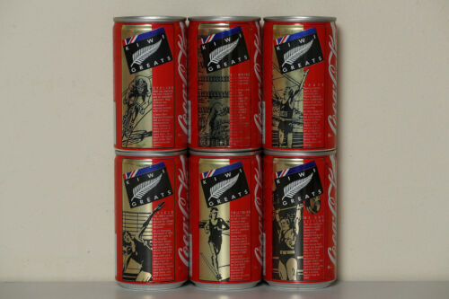1989 Coca Cola 6 cans set from New Zealand, Kiwi Greats