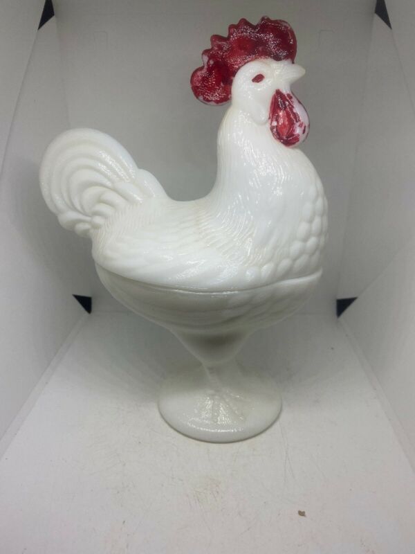 Title (ebay affiliate link): VINTAGE Milk Glass Standing Rooster Two Piece Covered Dish