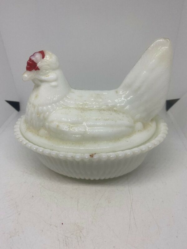 Vintage Hen On Nest Milk Glass Bowl