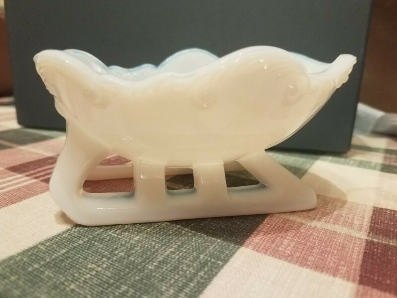 Fostoria Milk Glass Open Salt Dip Cellar Sleigh Sled Pattern Circa 1942-44 GOOD